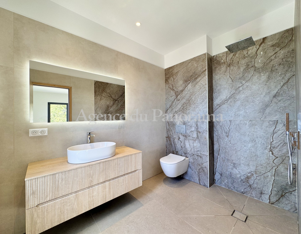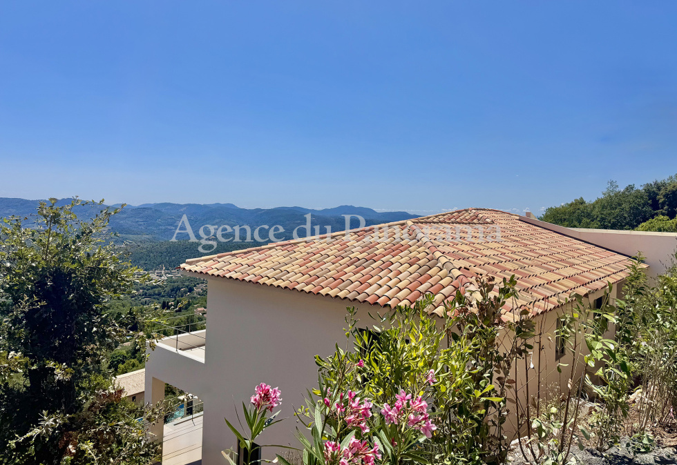 Bénéficiant d'une exceptionnelle vue panoramique à 180°, depuis Cabris en passant par la Baie de Cannes et le Massif de l'Esterel, très rare opportunité pour cette magnifique réalisation d'inspiration contemporaine qui s'articule autour d'une spacieuse et très lumineuse double réception de 69.40 m², cuisine, cellier et elle se complète par 4 magnifiques suites. L'ensemble est luxueusement traité. La propriété se compléte par une piscine (8 x 3.70) ainsi que de nombreuses dépendances (cave, garage, lingerie, terrasses). Terrain clôturé et paysager de 1588 m². Environnement de tout premier ordre au calme absolu. Fond d'impasse.