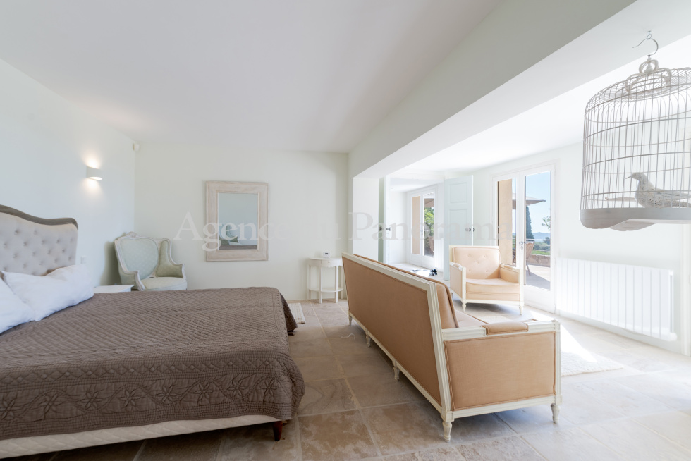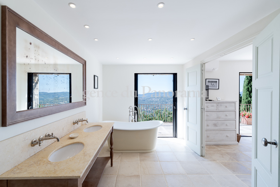 Bénéficiant d'une remarquable vue panoramique sur la baie de Cannes, le Massif de l'Estérel ainsi que sur le lac de Saint-Cassien, exceptionnelle propriété en pierre sèche luxueusement présentée et proposant de très beaux volumes extrêmement lumineux, répartis autour de 6 principales (260 m² habitables). La propriété se complète par une grande piscine chauffée se prolongeant par un superbe pool-house. Terrain clôturé et paysager de 2546 m². Propriété située au cœur d'un quartier ultra-résidentiel, l'ensemble à proximité immédiate du village.