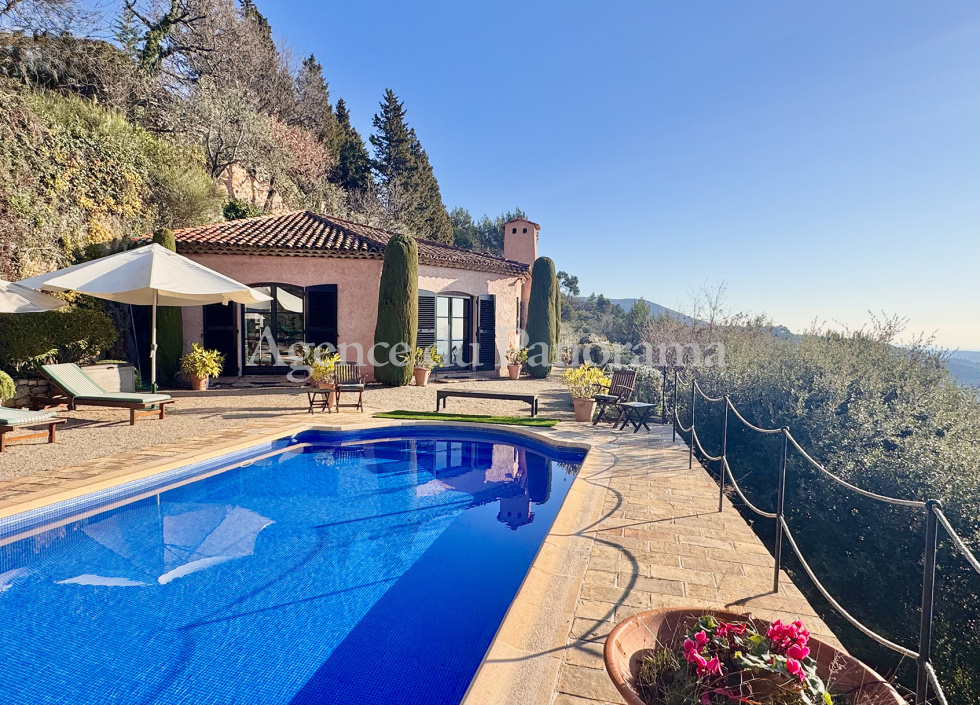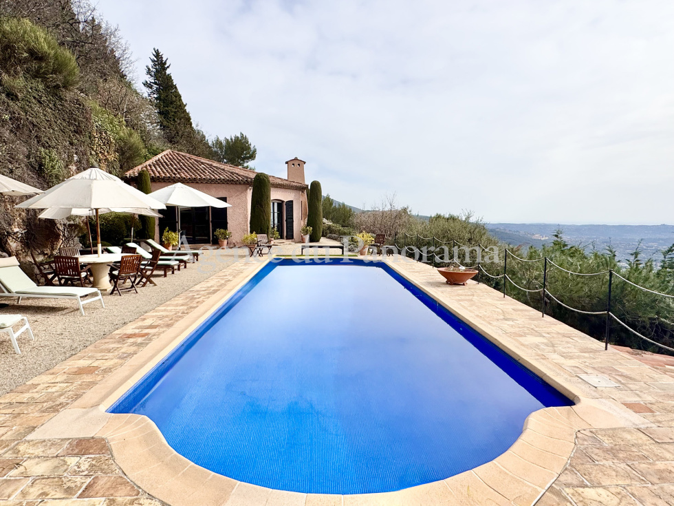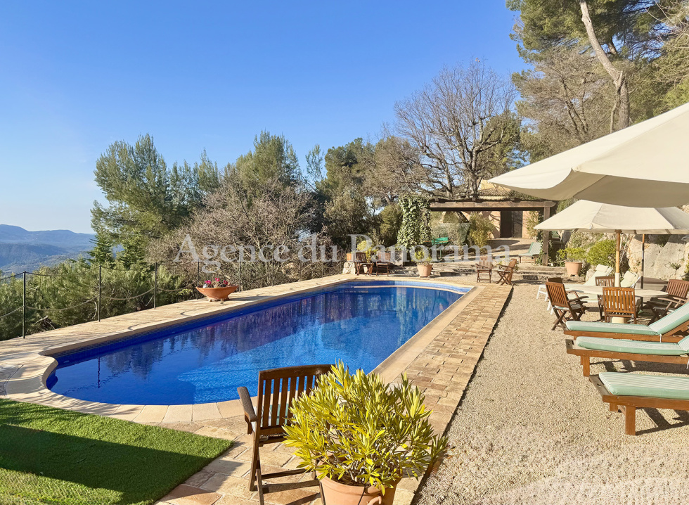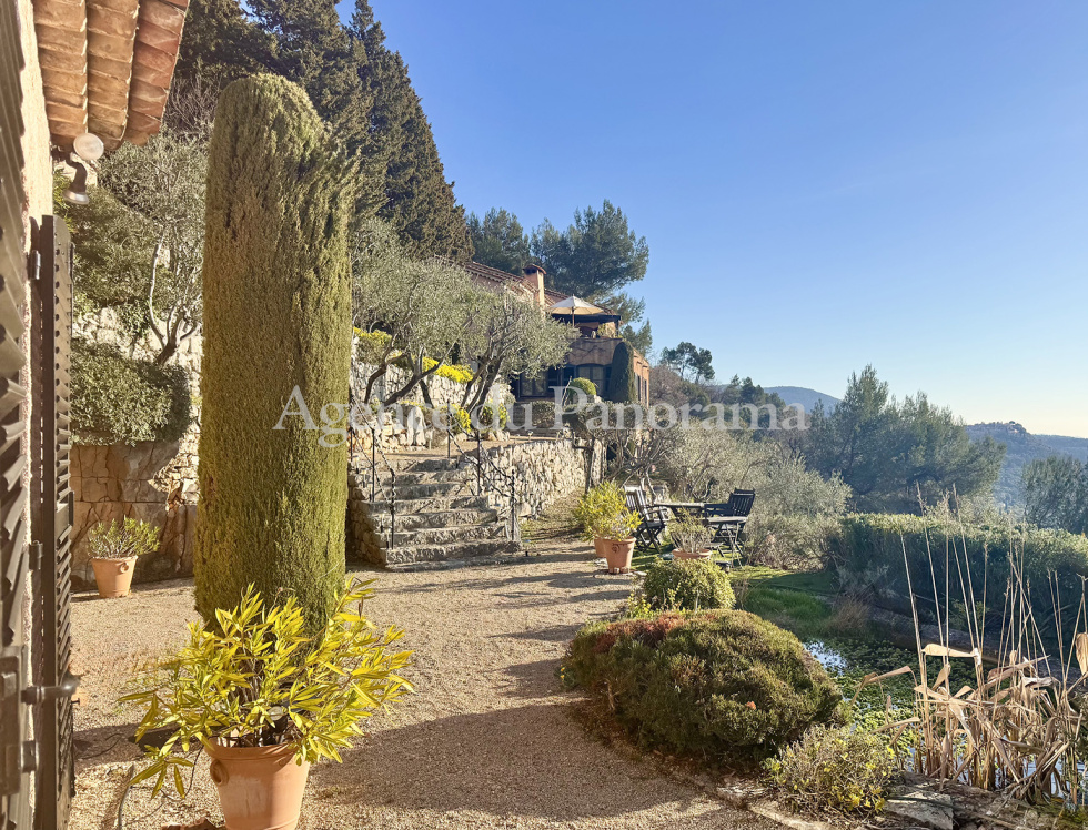 Panorama à couper le souffle pour cette propriété organisée autour de deux villas alliant charme et caractère. Elles s'articulent autour d’une maison principale (197.20 m² - 4 pièces principales) traitée à l'ancienne avec des matériaux nobles (terracotta, Salerne, poutres... et d'une seconde habitation d'inspiration plus moderne organisée autour d'un remarquable volume de 85.25 m². L'ensemble est présenté avec soin. Terrain de 5059 m², clôturé et paysager, idéalement orienté plein soleil. Superbe piscine traditionnelle (13 x 4) se complétant par plusieurs terrasses, parking, garage et autres pergolas. Environnement de tout premier ordre au calme absolu. Très rare opportunité.