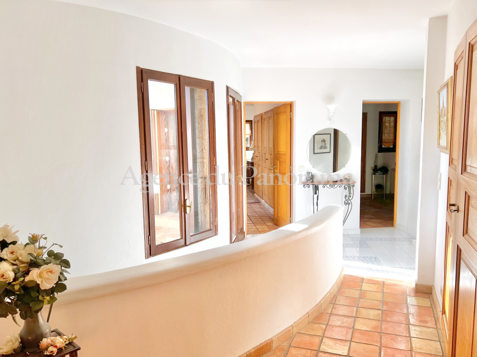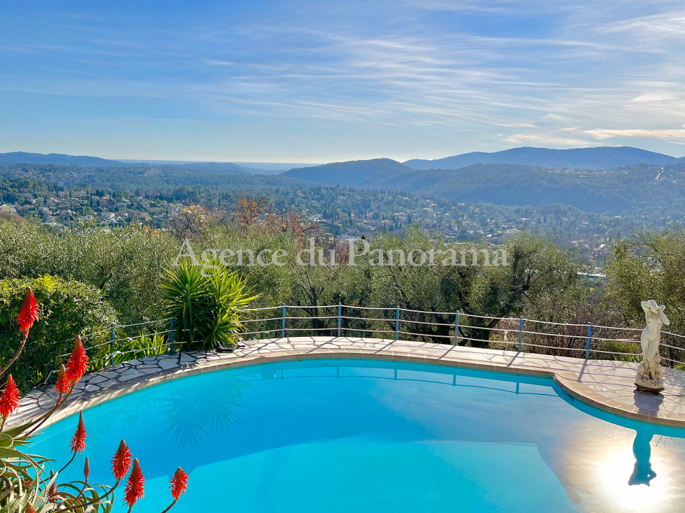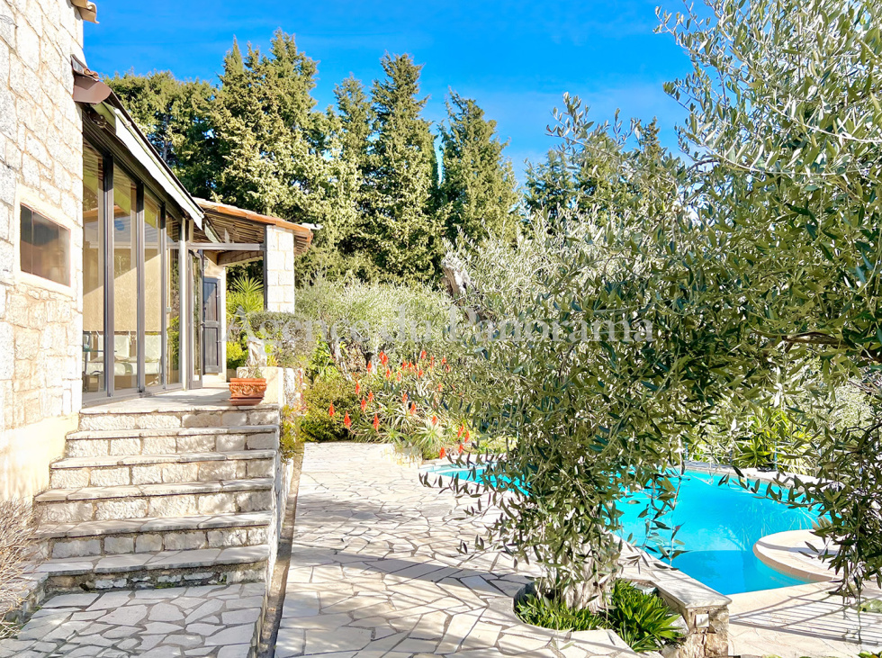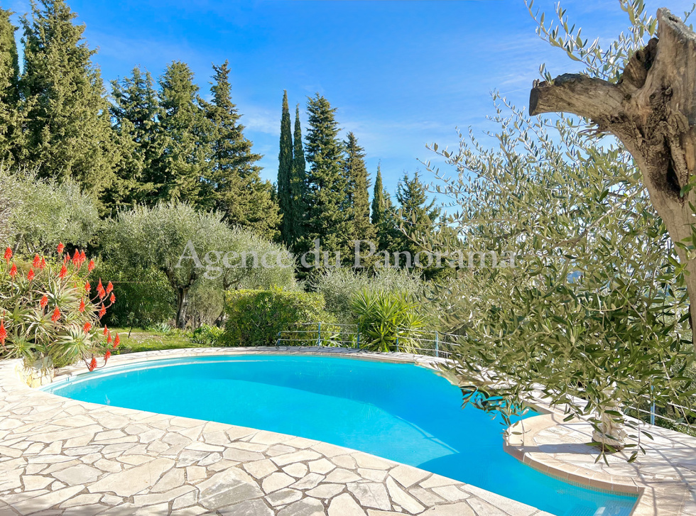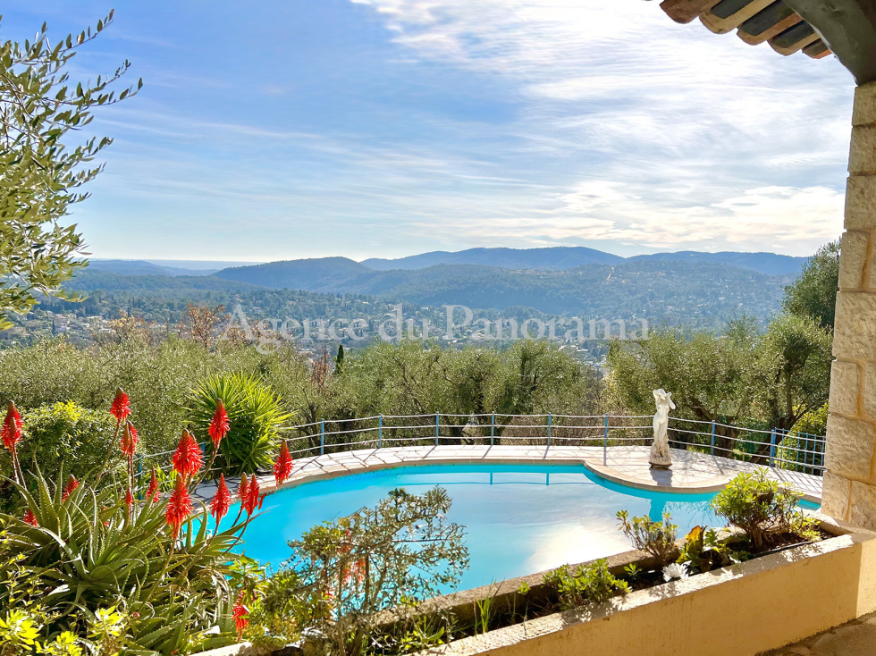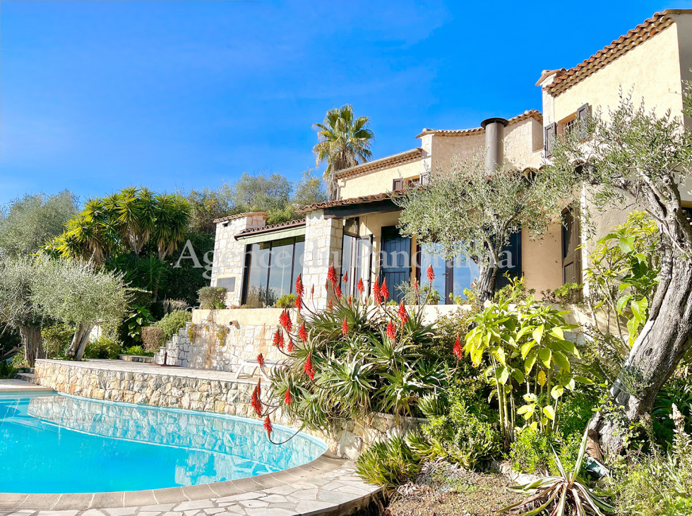 Splendid tradtional house nestled in the middle of an olive grove, treated with high quality material (terracotta, beams, ...) and organized around 6/7 main rooms (206.50m²) in truly perfect condition. Superb an spacious annexs (veranda, utility room, terraces, solarium) around 2 traditional swimming-pools. Land 2509 m² South facing and dominating the Esterel Hills and the Bay of Cannes (Sea view). Very residential and peacefull area. Deserve to be seen.