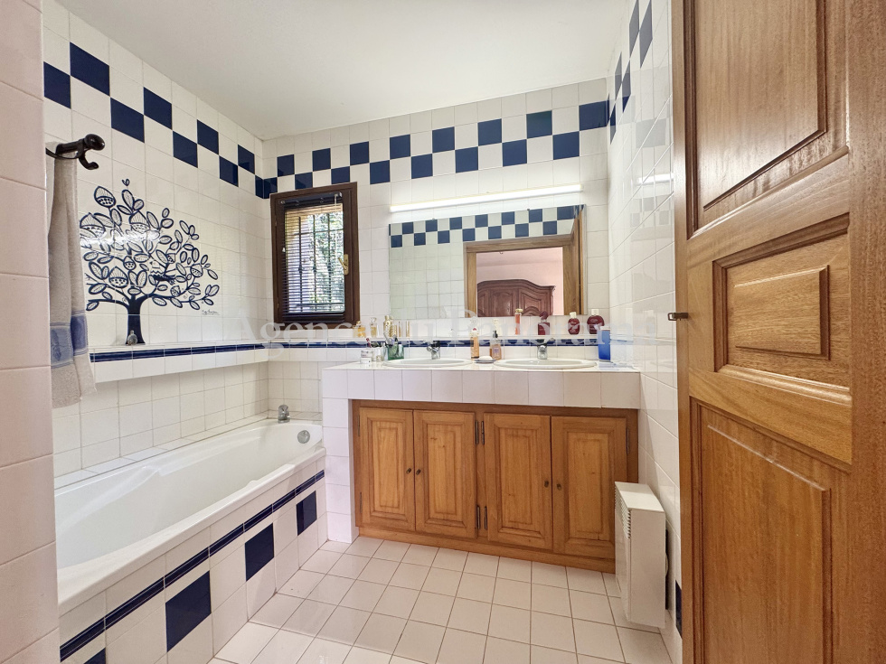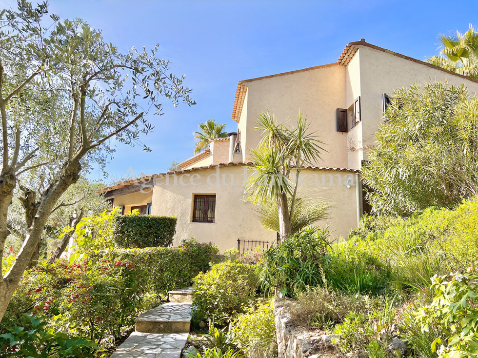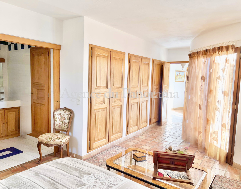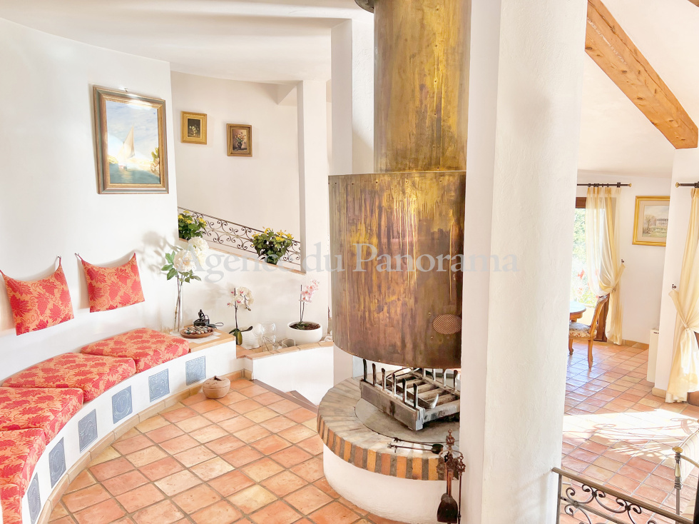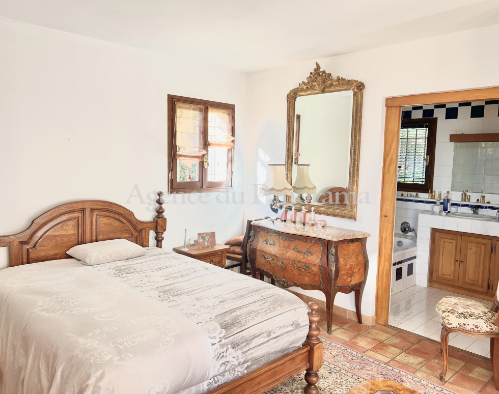 Splendid tradtional house nestled in the middle of an olive grove, treated with high quality material (terracotta, beams, ...) and organized around 6/7 main rooms (206.50m²) in truly perfect condition. Superb an spacious annexs (veranda, utility room, terraces, solarium) around 2 traditional swimming-pools. Land 2509 m² South facing and dominating the Esterel Hills and the Bay of Cannes (Sea view). Very residential and peacefull area. Deserve to be seen.