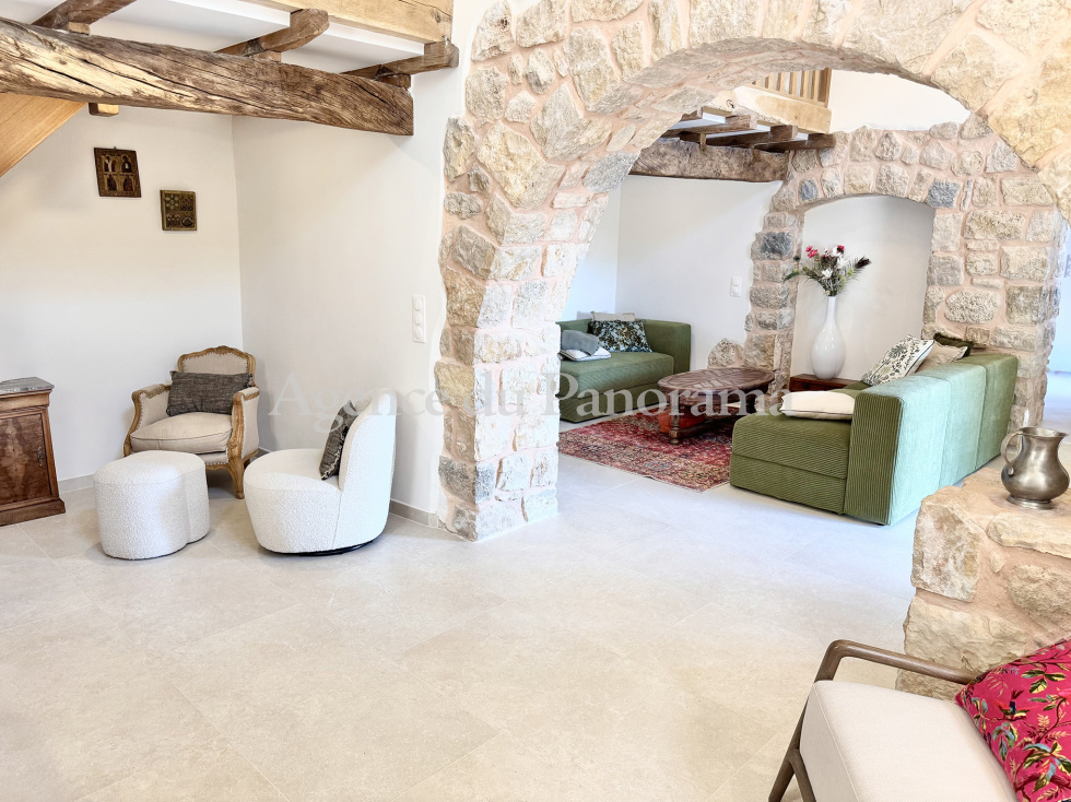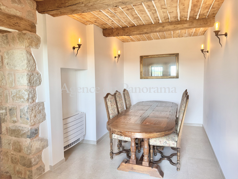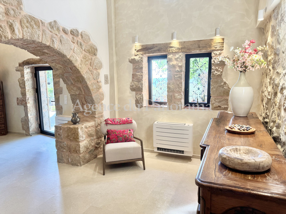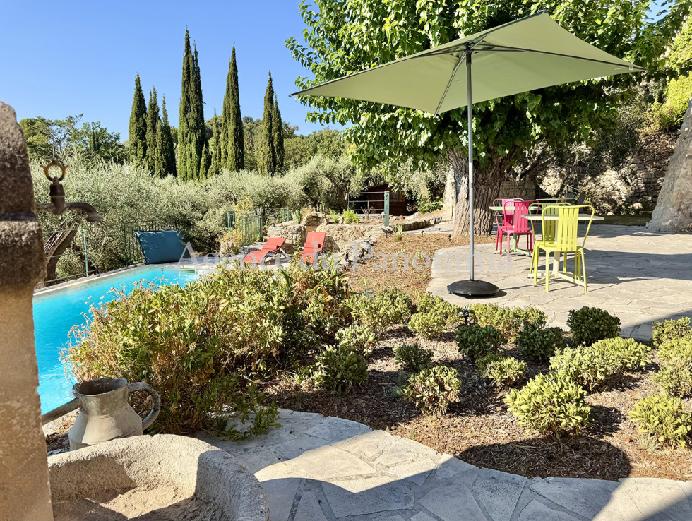 Authentique Mas en pierre du XVIIIème siècle oû l'atmosphère unique vous charmera. Luxueusement présenté et s'articulant autour d'une double réception avec cheminée, d'une cuisine équipée et de cinq suites (dont deux indépendantes). Le Mas propose des prestations de très grand standing et d'un rare raffinement (206 m² habitables). Terrain clôturé s'ouvrant sur une oliveraie de 3584 m² articulé autour de plusieurs restanques. Annexes : Mazet en pierre indépendant, garage indépendant, abri voiture, piscine (10 x 4), atelier et terrasses. Possibilité d'extension voire de réaliser une seconde unité foncière (CES résiduel d'environ 330 m²). Très rare opportunité. Propriété réellement incroyable dominant une sublime campagne et bénéficiant d'un magnifique panorama. Environnement de tout premier ordre, au calme absolu.